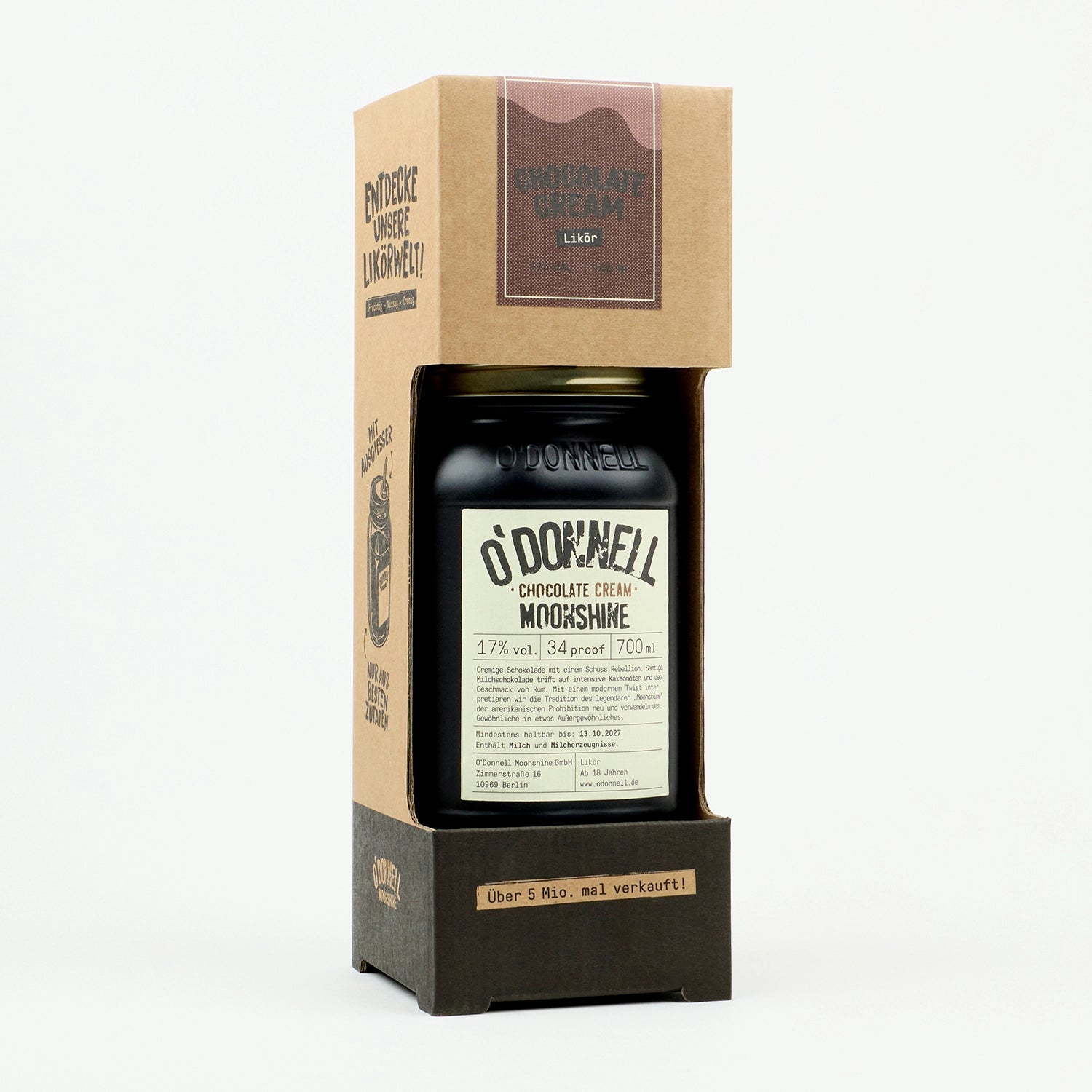Der Chocolate Cream Moonshine ist mehr als nur eine neue Sorte – er ist ein flüssiges Dessert im Glas. Eine cremige, vollmundige Edition, die das Portfolio perfekt abrundet. Sie spricht Schokoliebhaber und Cream-Fans an, die auf der Suche nach einem besonderen Drink für genussvolle Momente sind.